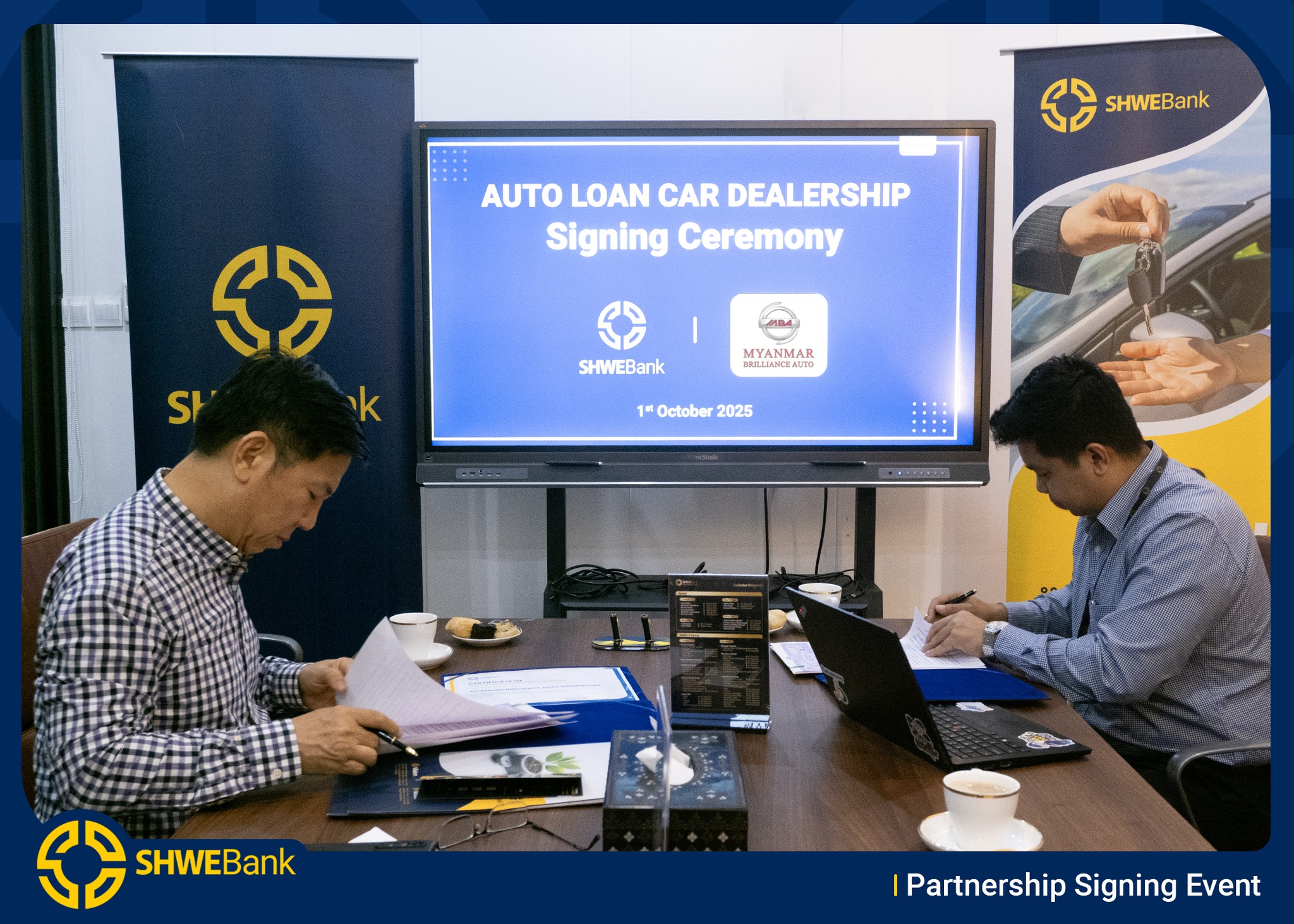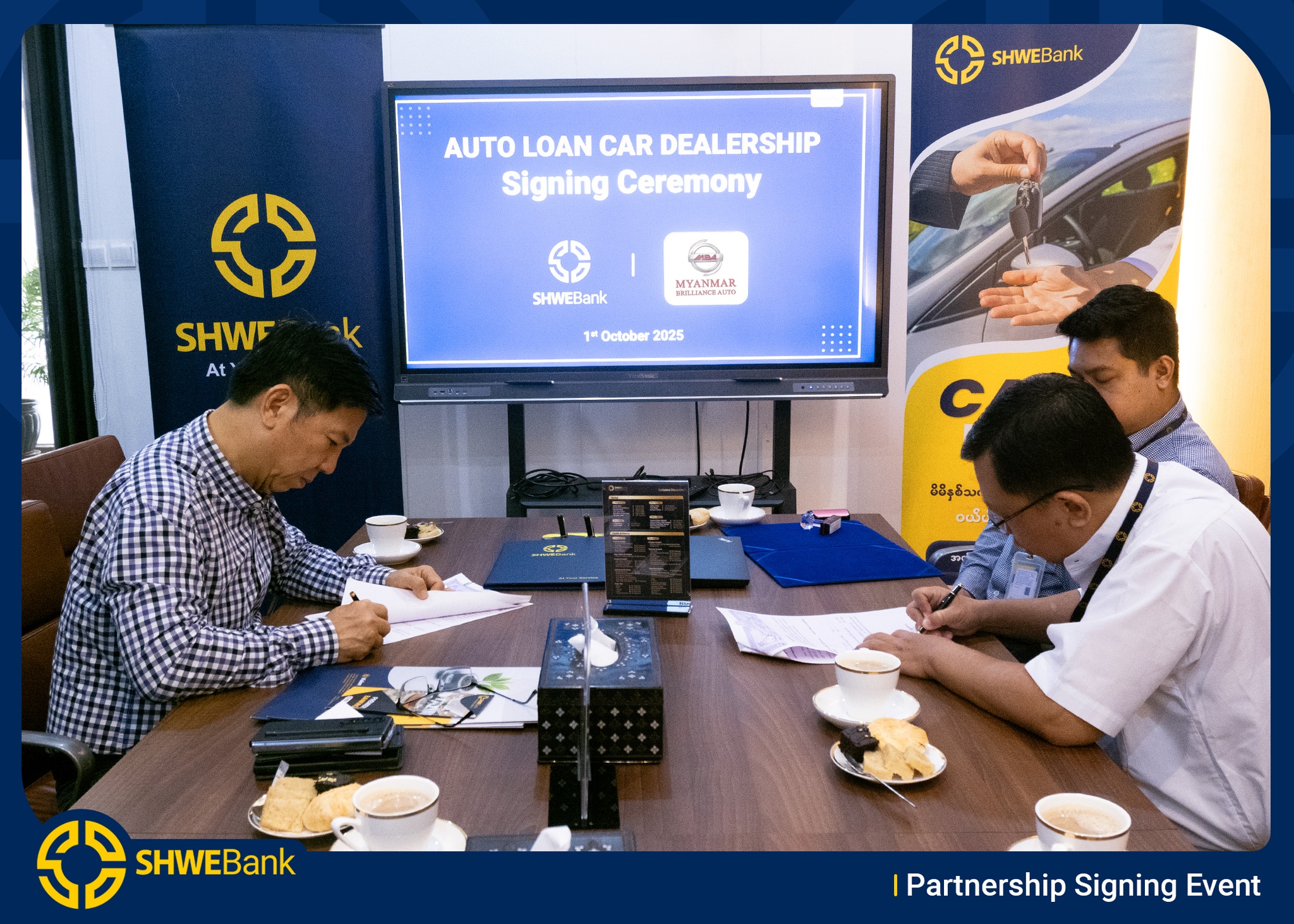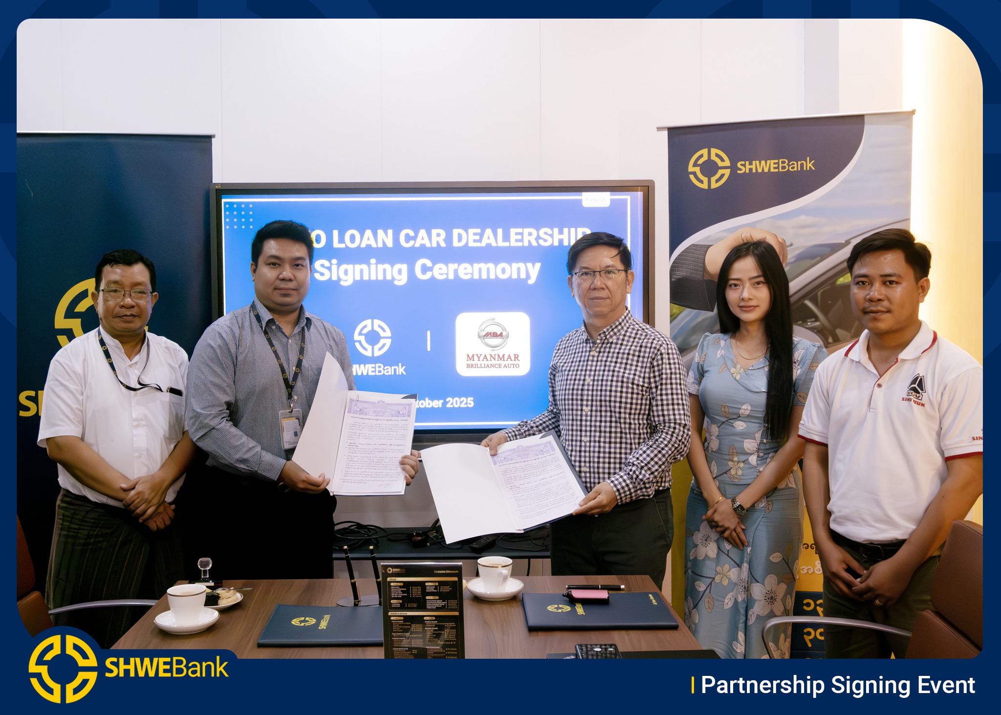 We are thrilled to announce that SHWE Bank and MYANMAR BRILLANCE AUTO have officially signed a Car Loan Dealership Agreement.