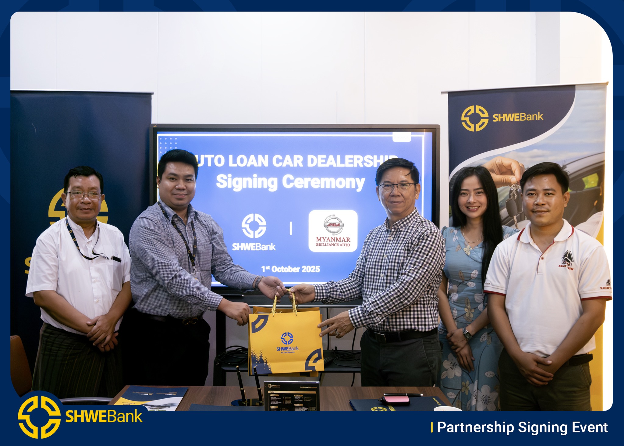 hashtag#SHWEBank hashtag#AtYourService hashtag#MYANMARBRILLANCEAUTO hashtag#CarLoan hashtag#Partnership hashtag#AutoFinancing