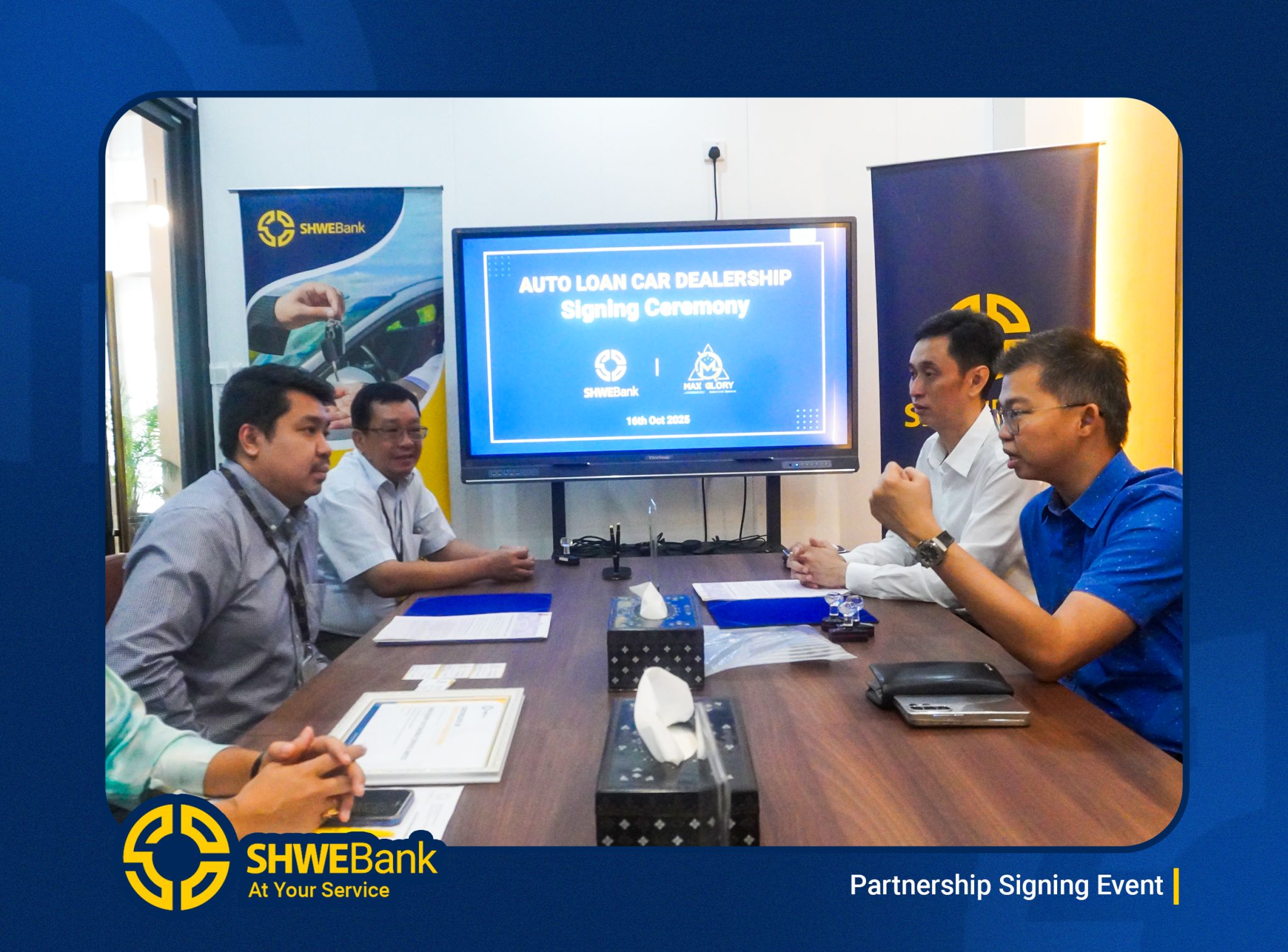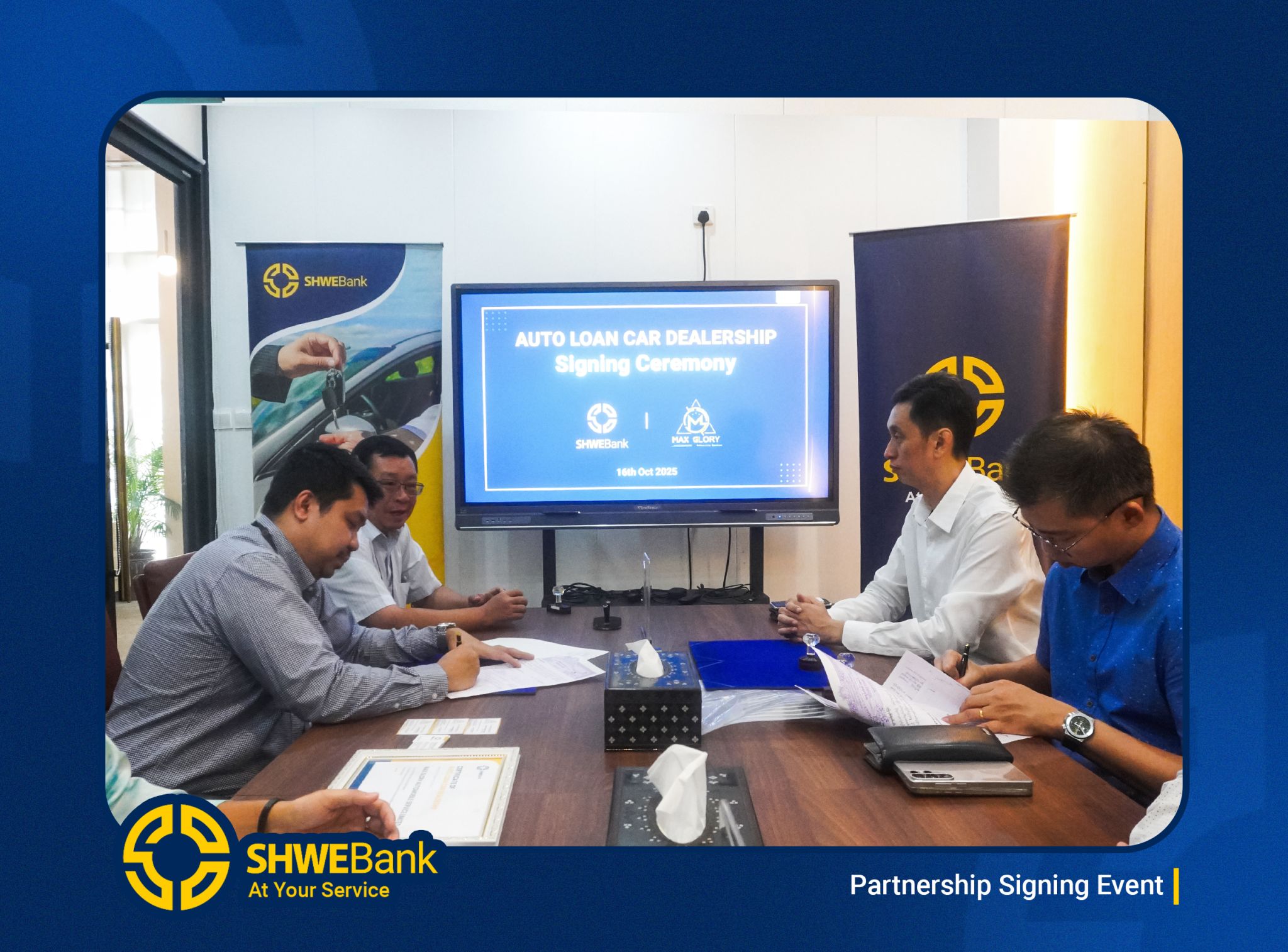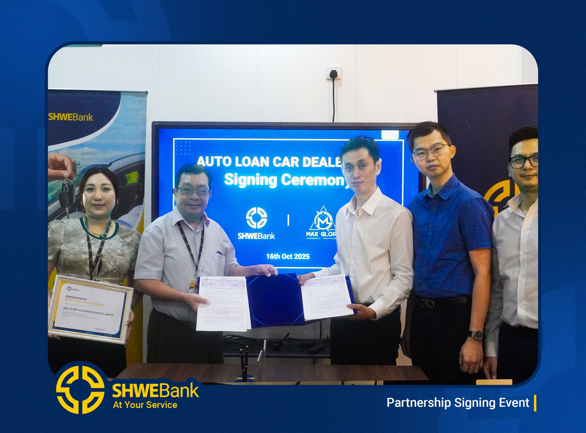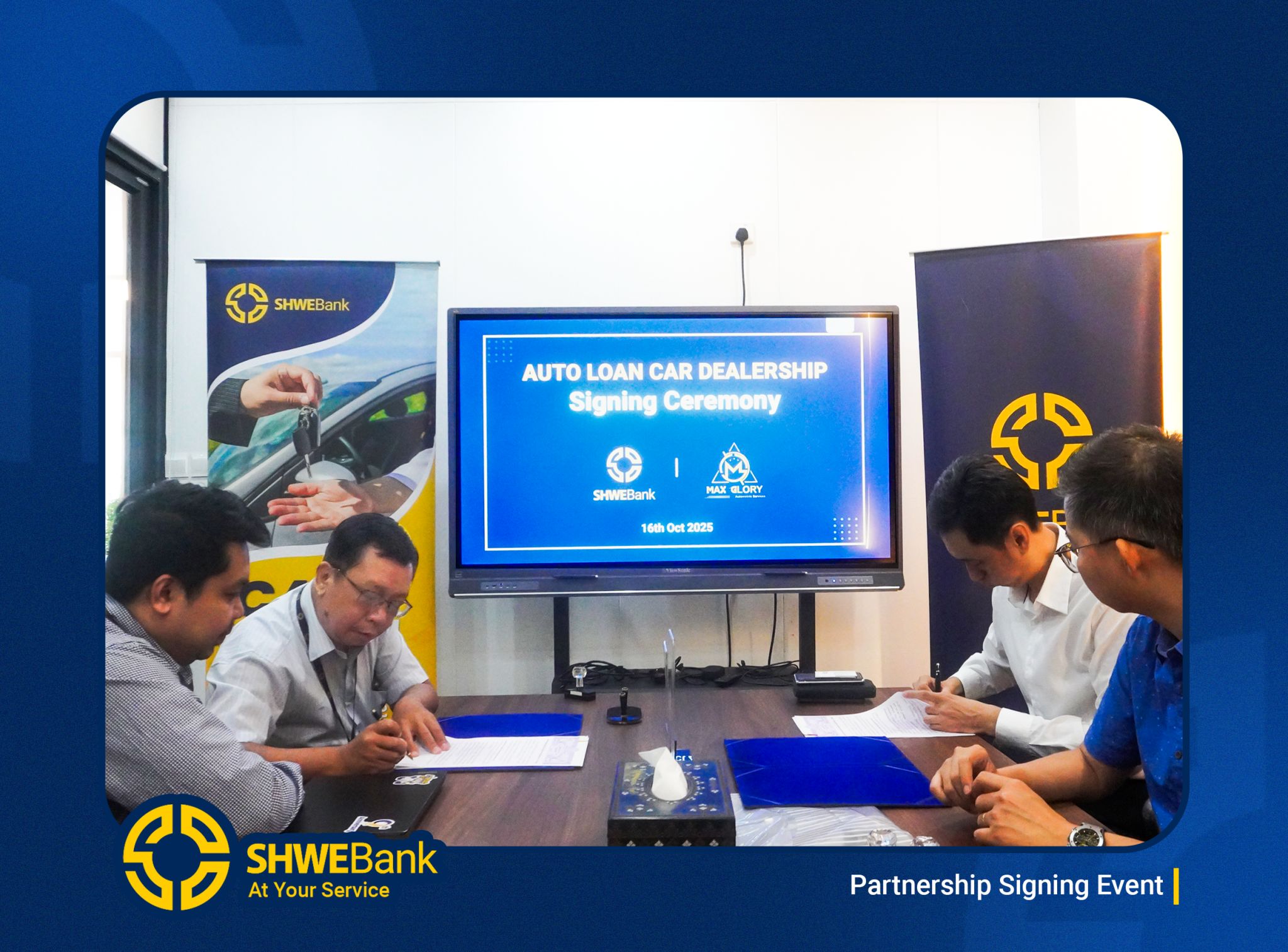 We are delighted to announce that SHWE Bank and Max Glory Automobile Services have officially entered into a “Car Loan Dealership” to provide excellent services for car buyers!