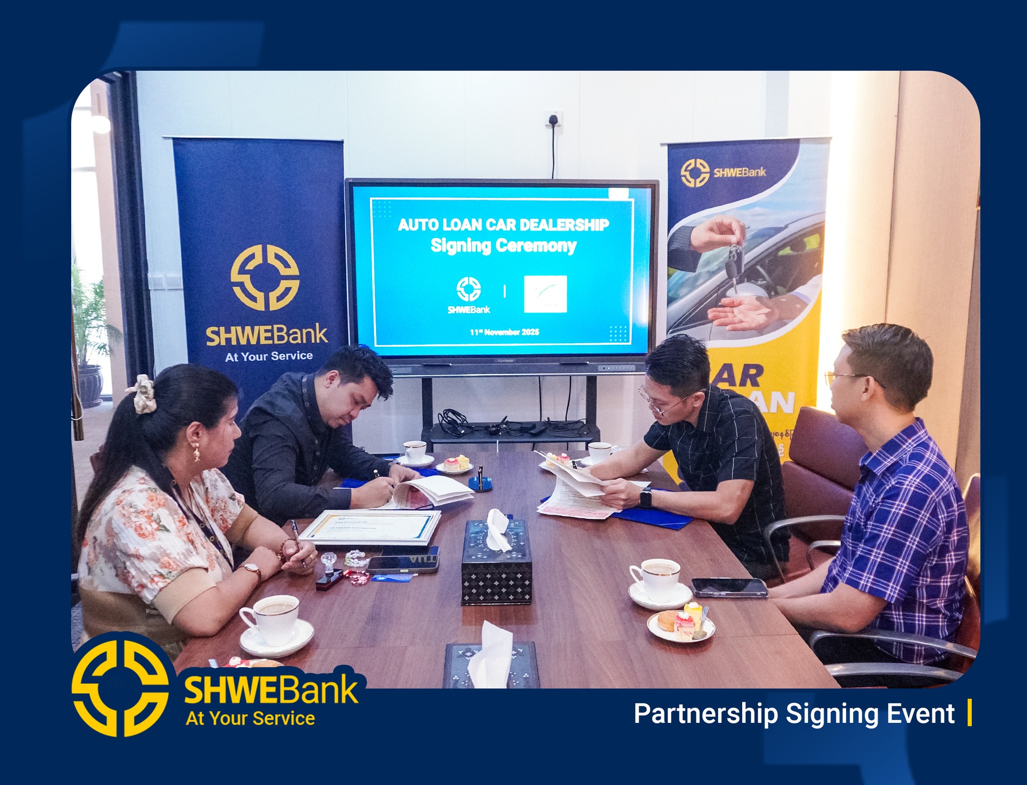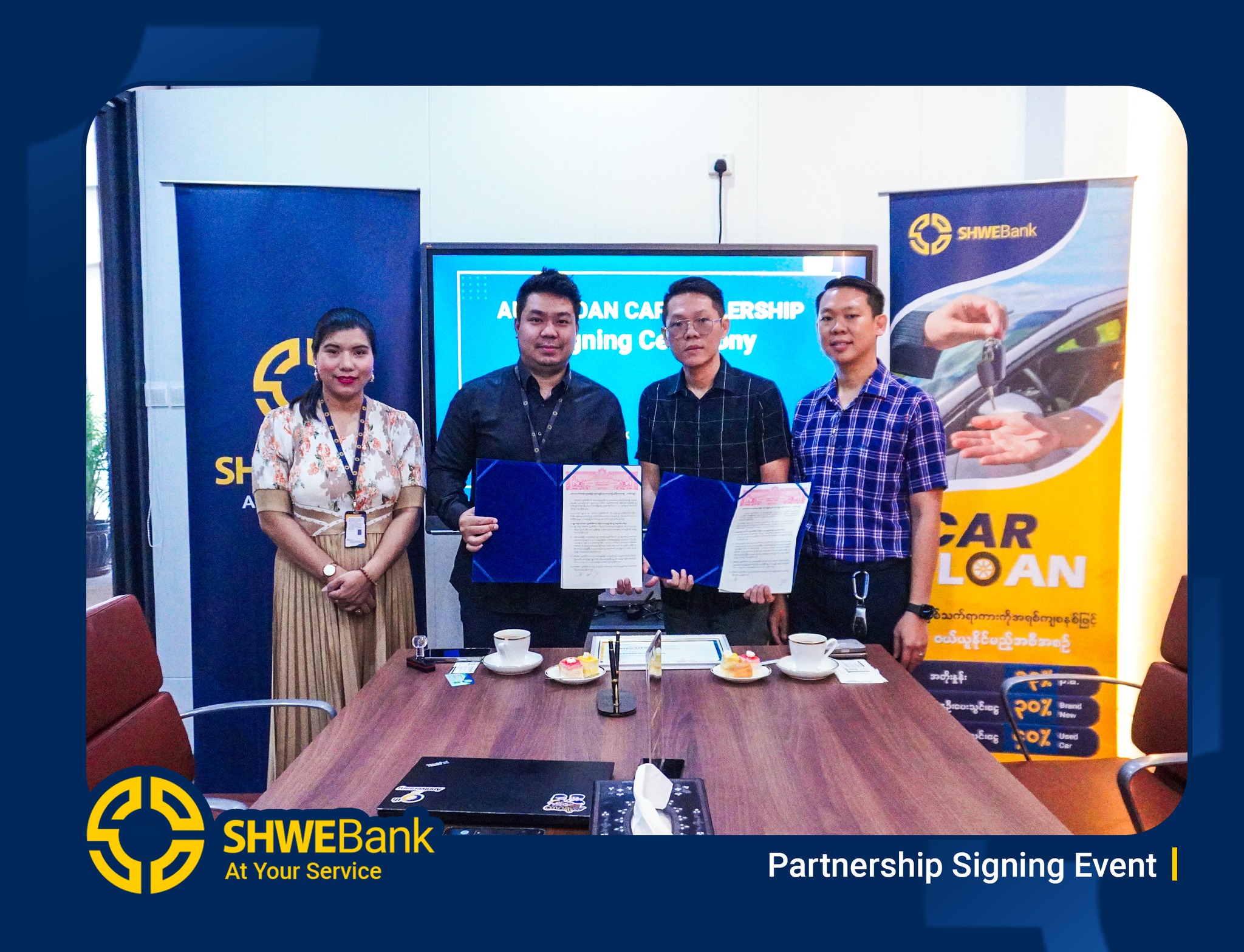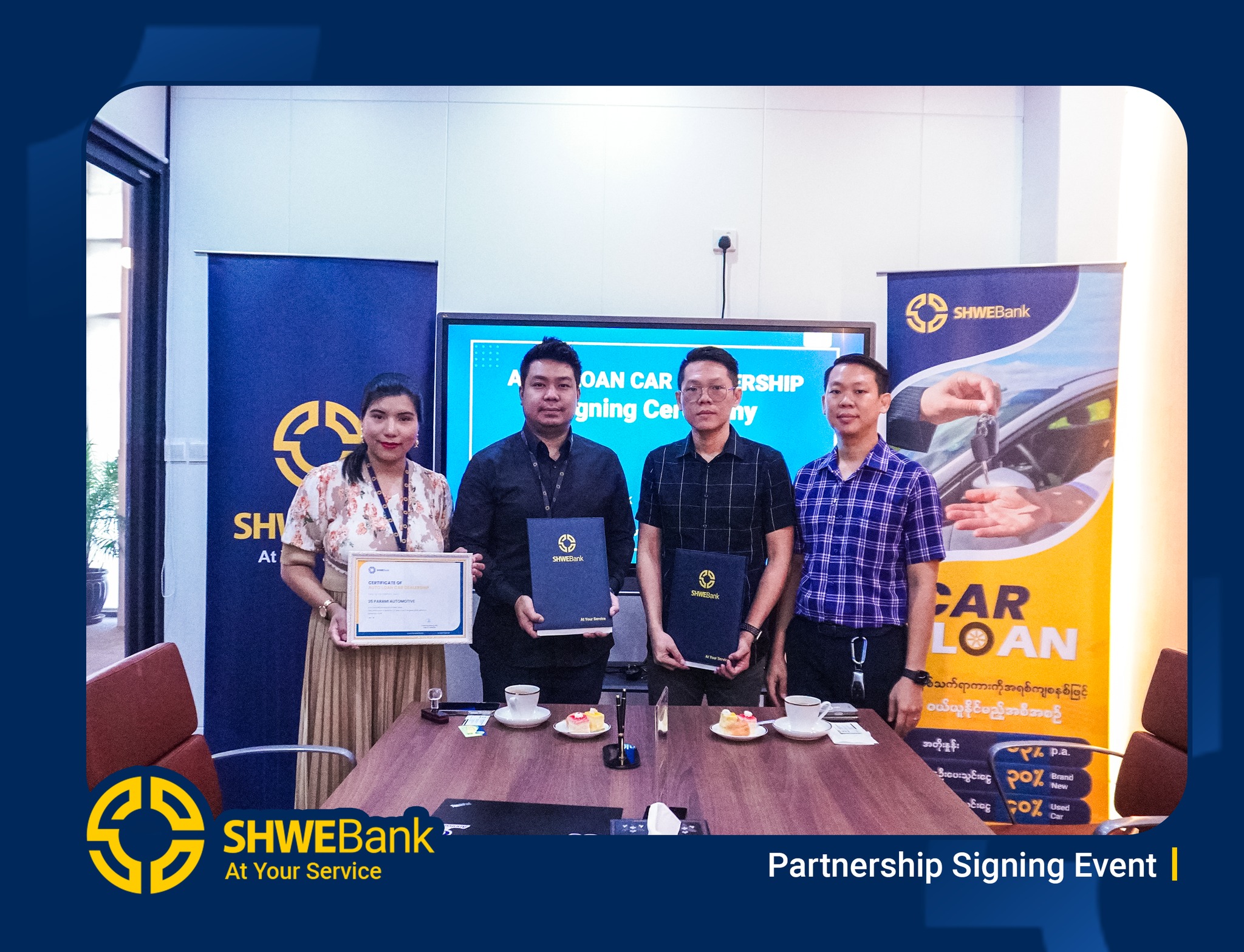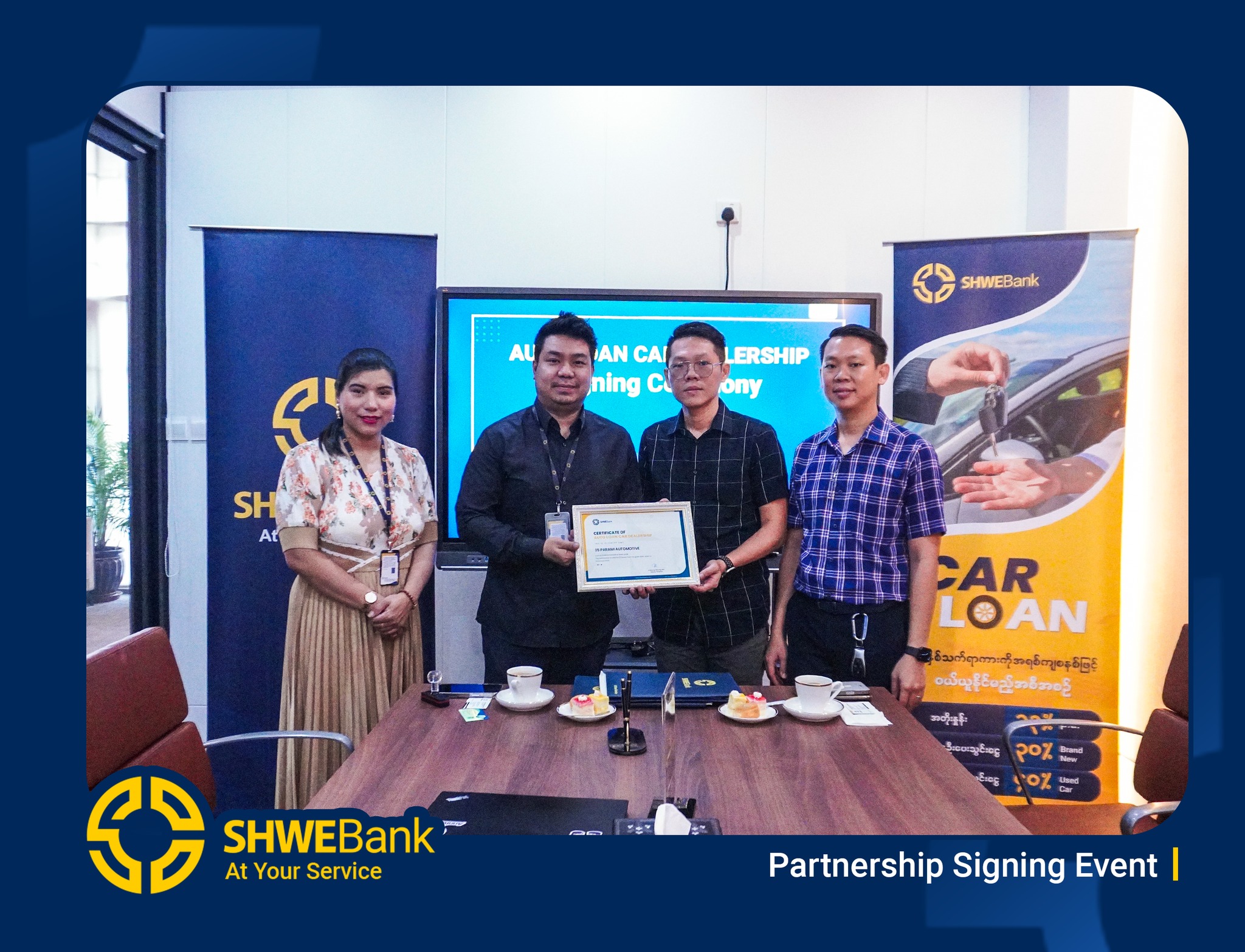 SHWE Bank နှင့် PARAMI Automotive တို့သည် “Car Loan Dealer Partnership” အဖြစ် တရားဝင် လက်မှတ်ရေးထိုးလိုက်ပြီဖြစ်ပါသည်။ ယခုအစီအစဥ်ကြောင့် PARAMI Automotive ရှိ အရည်အသွေးမြင့် ကားများကို ဝယ်ယူလိုသူများအနေဖြင့် SHWE Bank ၏ Car Loan အစီအစဉ်ဖြင့် လွယ်ကူလျင်မြန်စွာ ဝယ်ယူနိုင်တော့မည် ဖြစ်သည်။
