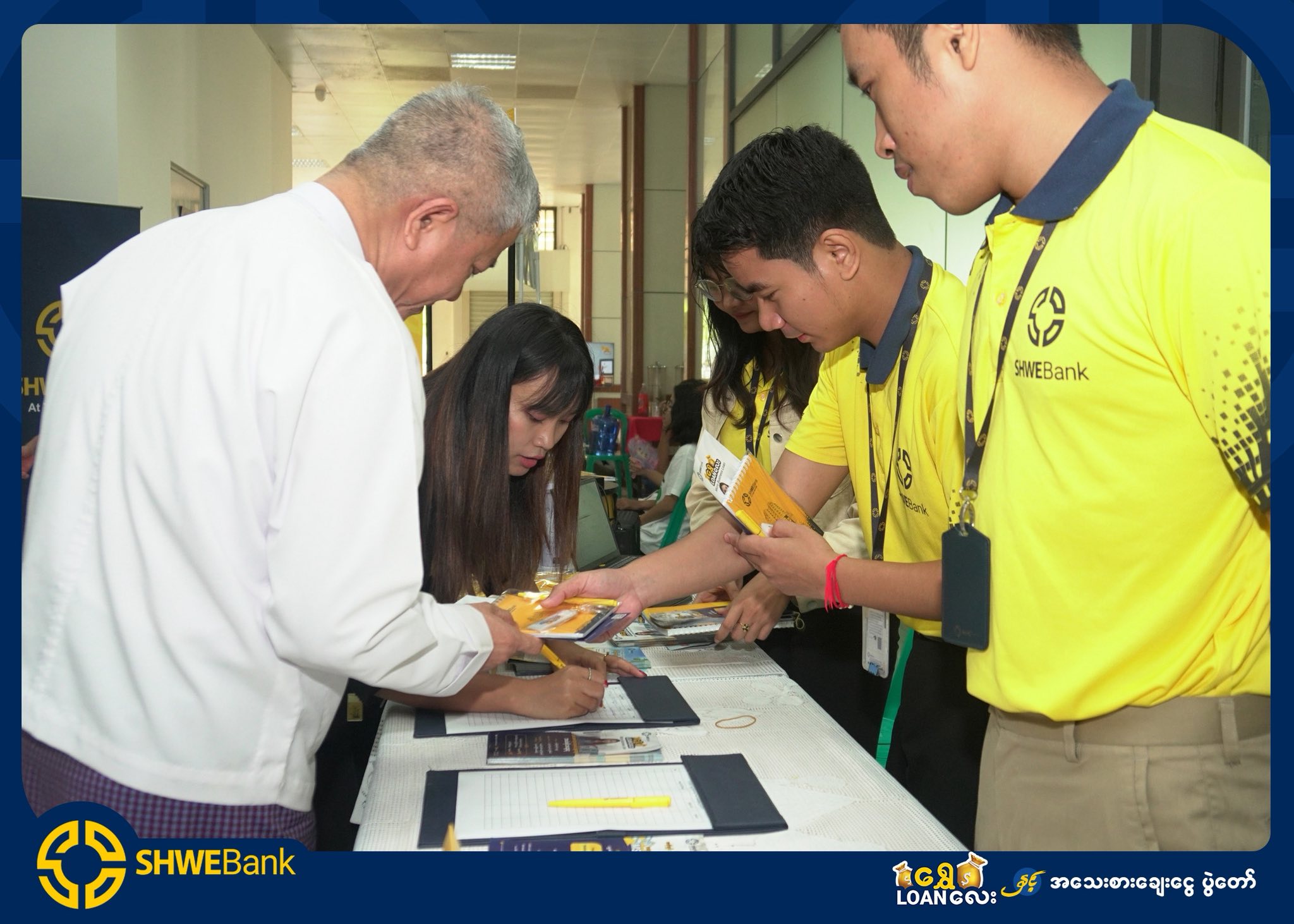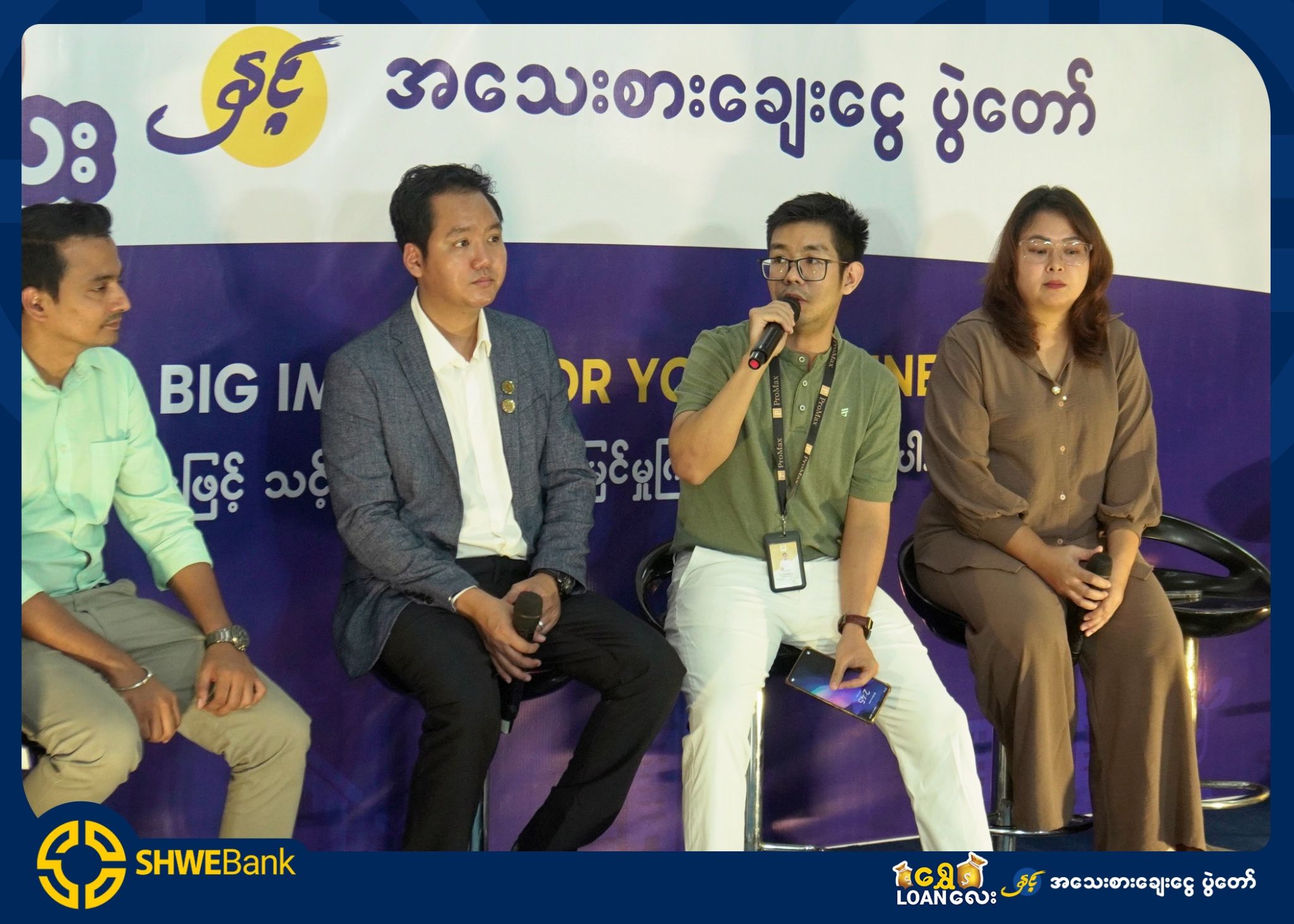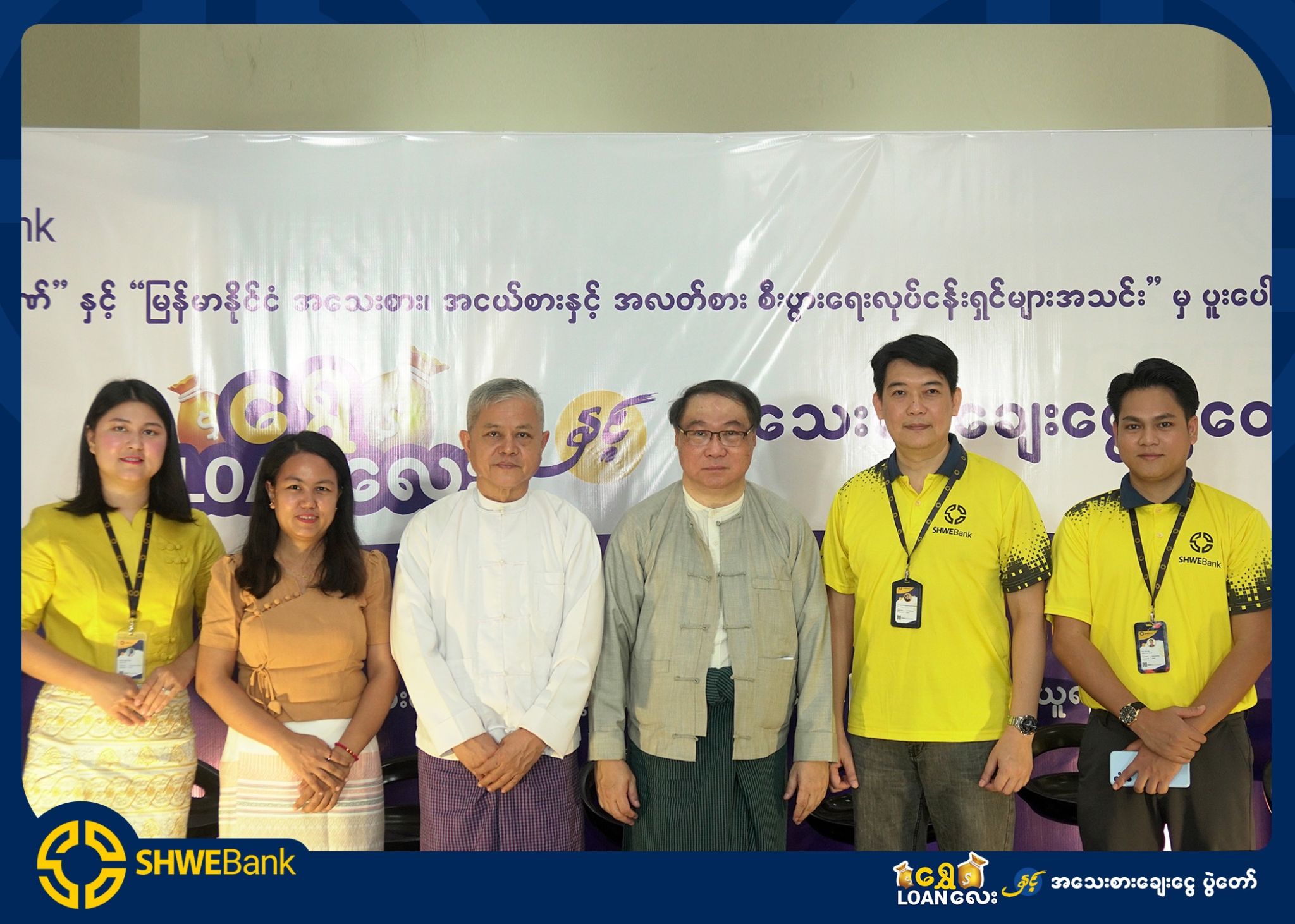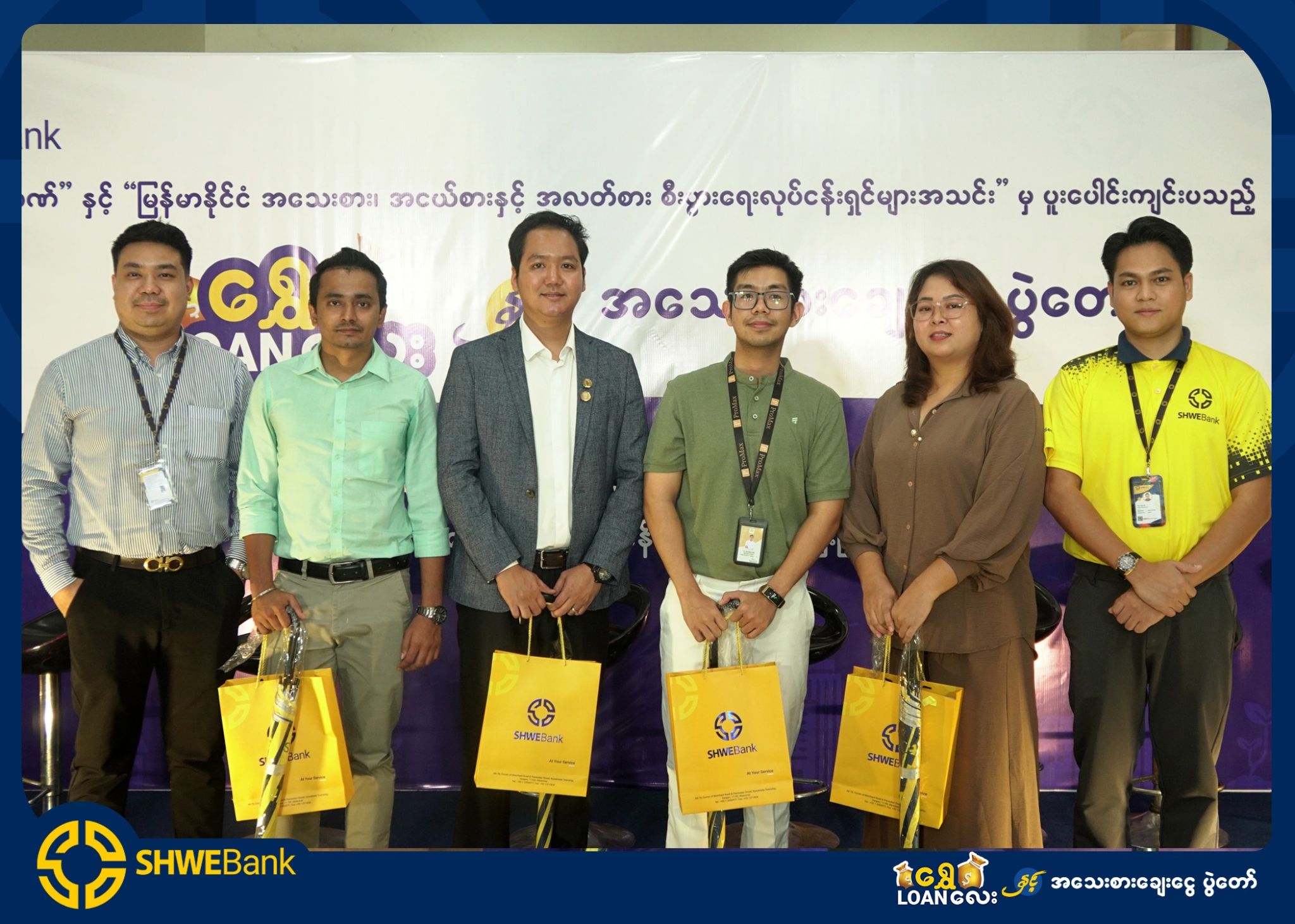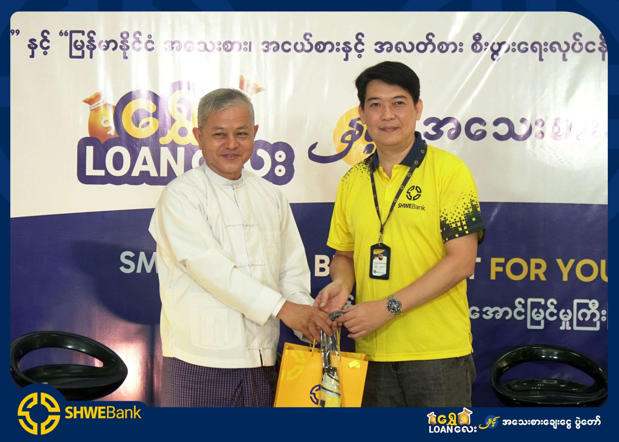 SHWE Bank နှင့် မြန်မာနိုင်ငံ အသေးစားနှင့် အငယ်စား၊ အလတ်စား စီးပွားရေးလုပ်ငန်းများအသင်းမှ ပူးပေါင်းကျင်းပသော “ရွှေ 𝐋𝐨𝐚𝐧 လေးနှင့် အသေးစားချေးငွေပွဲ‌တော်” ကြီးကို SHWE Bank ရုံးချုပ်တွင် စည်ကားသိုက်မြိုက်စွာဖြင့် ကျင်းပပြုလုပ်ခဲ့ပါတယ်။