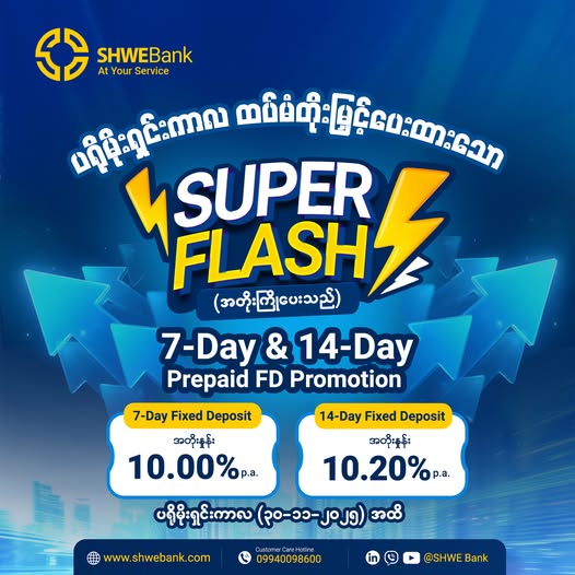 Super Flash 14-Days Prepaid FD Deposit ဆိုရင် အတိုးနှုန်း (10.20% p.a)