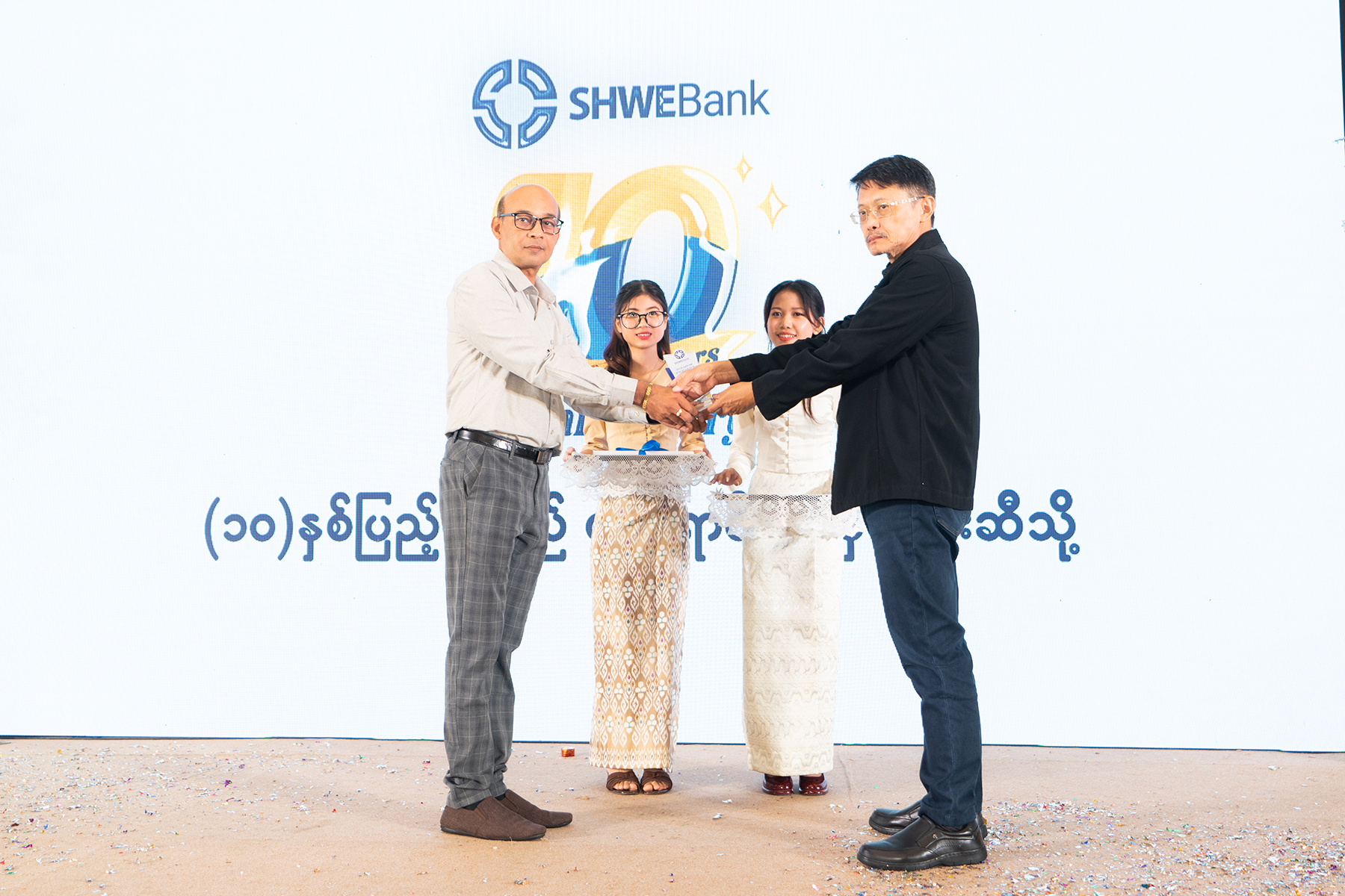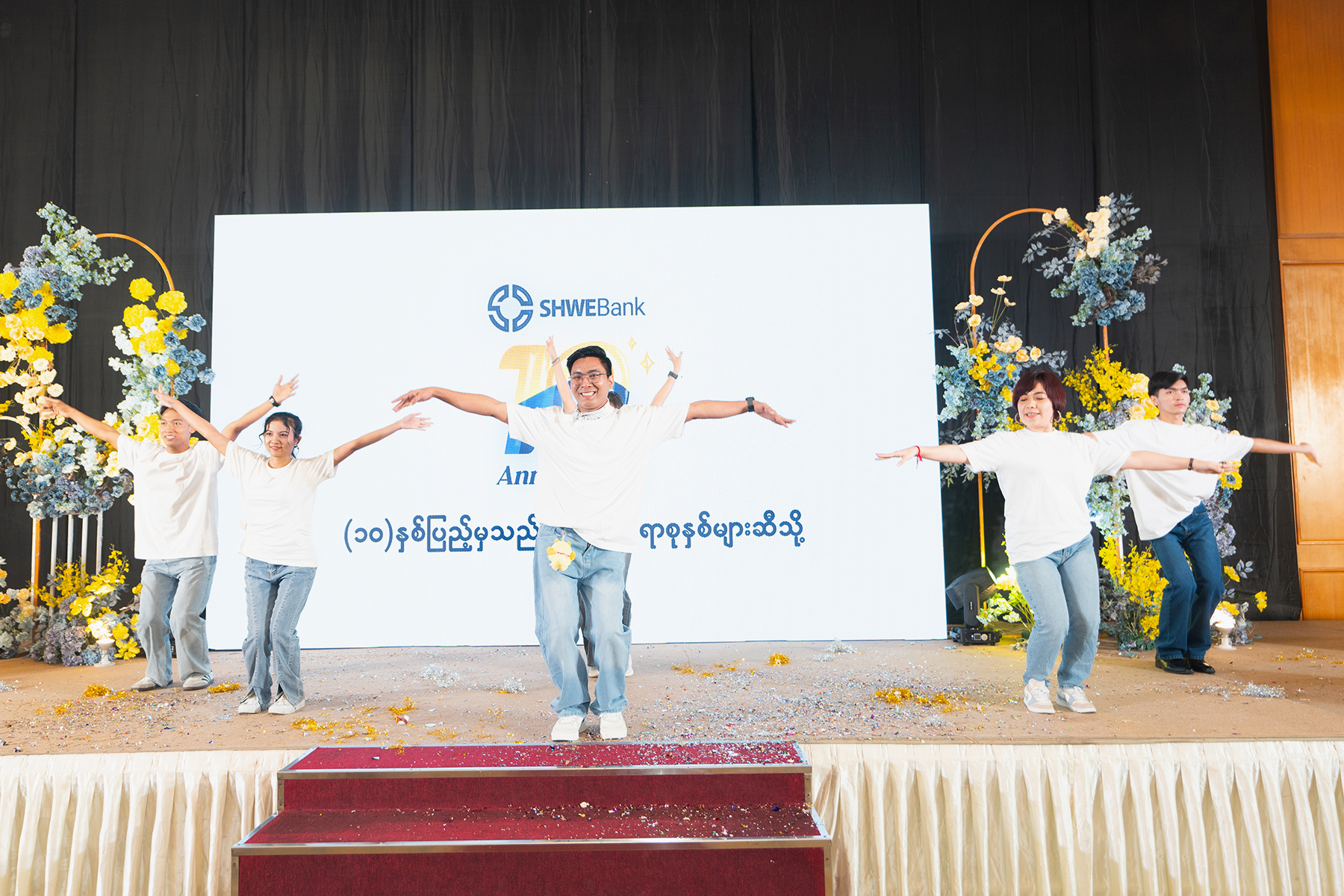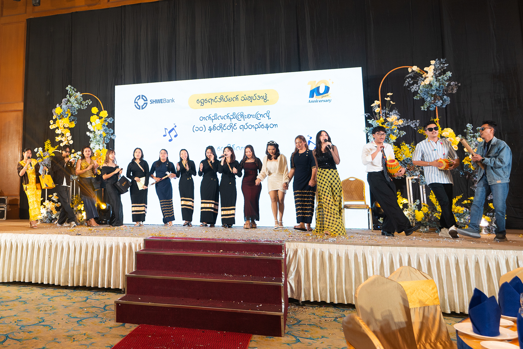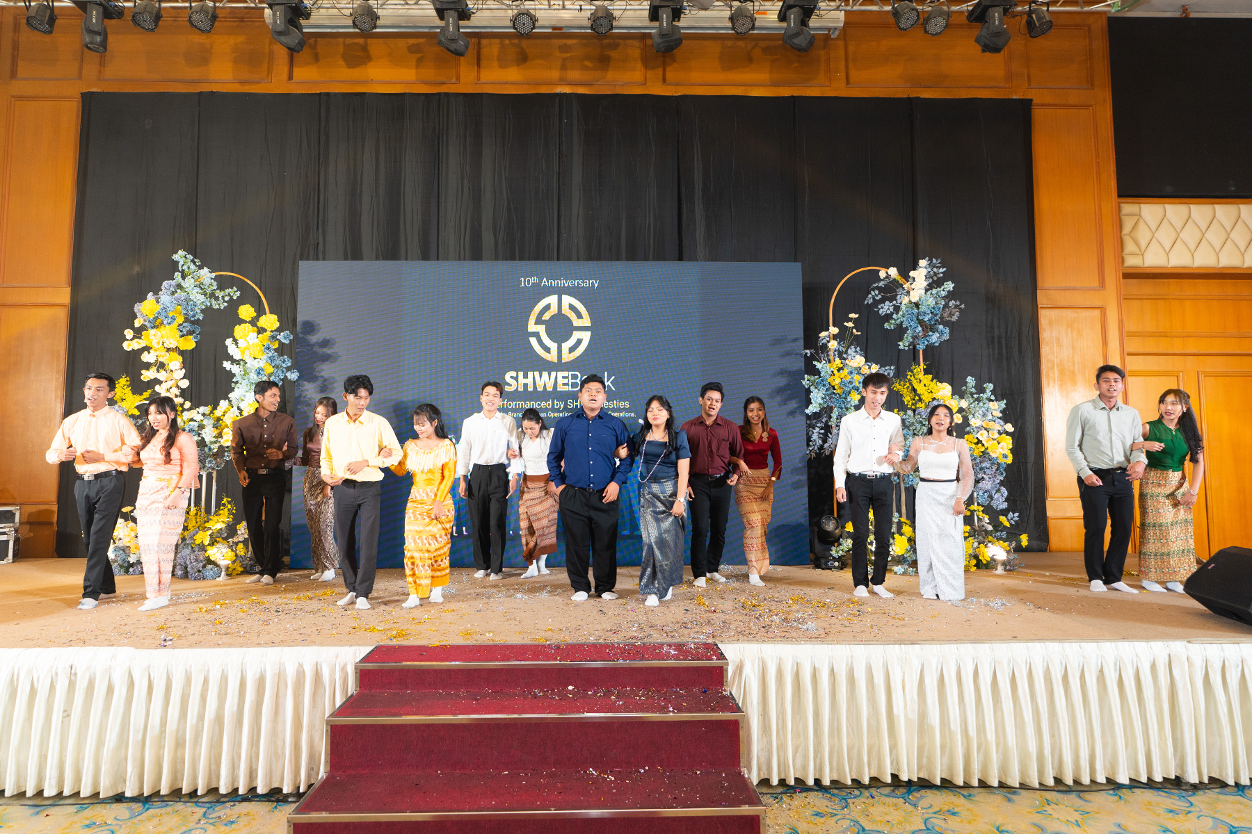 SHWE Bank ရဲ့ ဆယ်စုနှစ်တစ်ခုကြာအောင်မြင်မှု ခရီးလမ်းမှာ အတူတကွ လက်တွဲလျှောက်လှမ်းခဲ့ကြတဲ့ ဝန်ထမ်းမိသားစုများအတွက် (၁၀) နှစ်ပြည့် အထိမ်းအမှတ် Staff Party ကို ပျော်ရွှင်ခမ်းနားစွာ ကျင်းပခဲ့ပါတယ်။