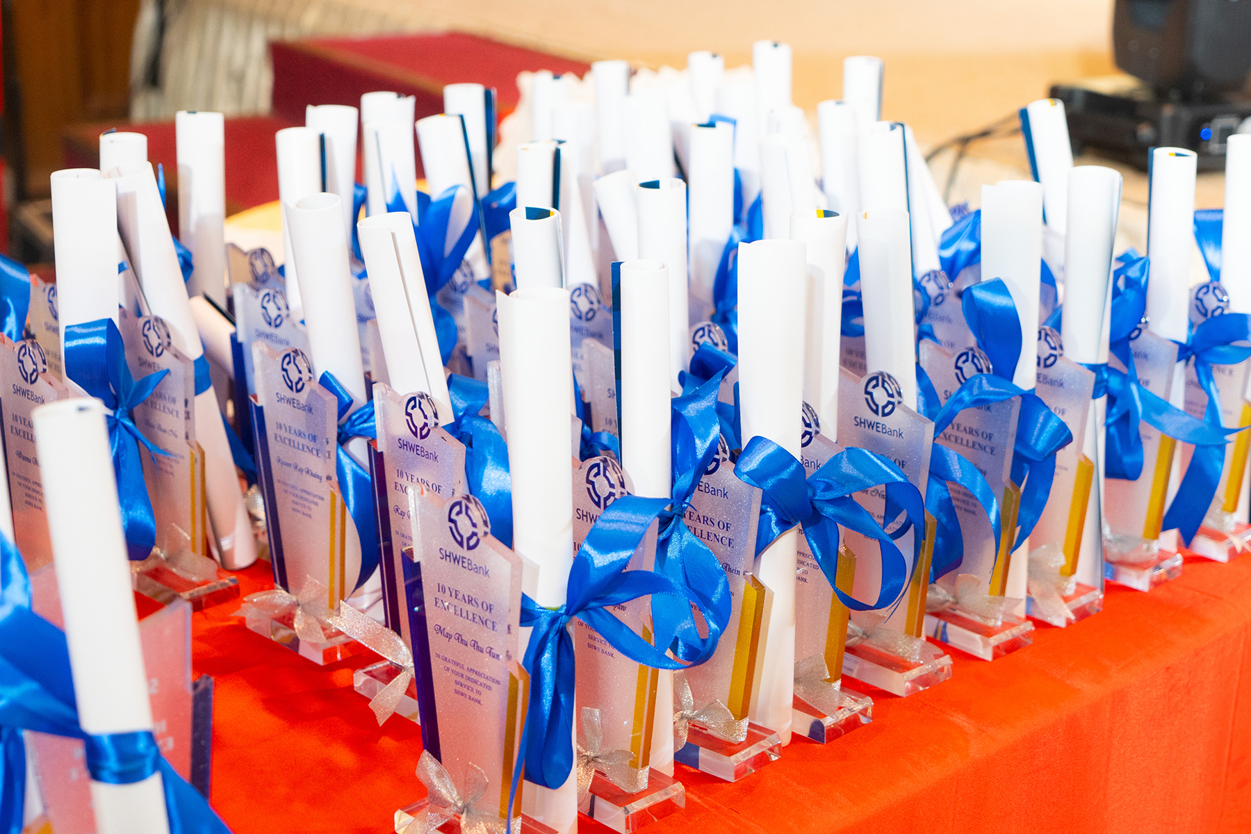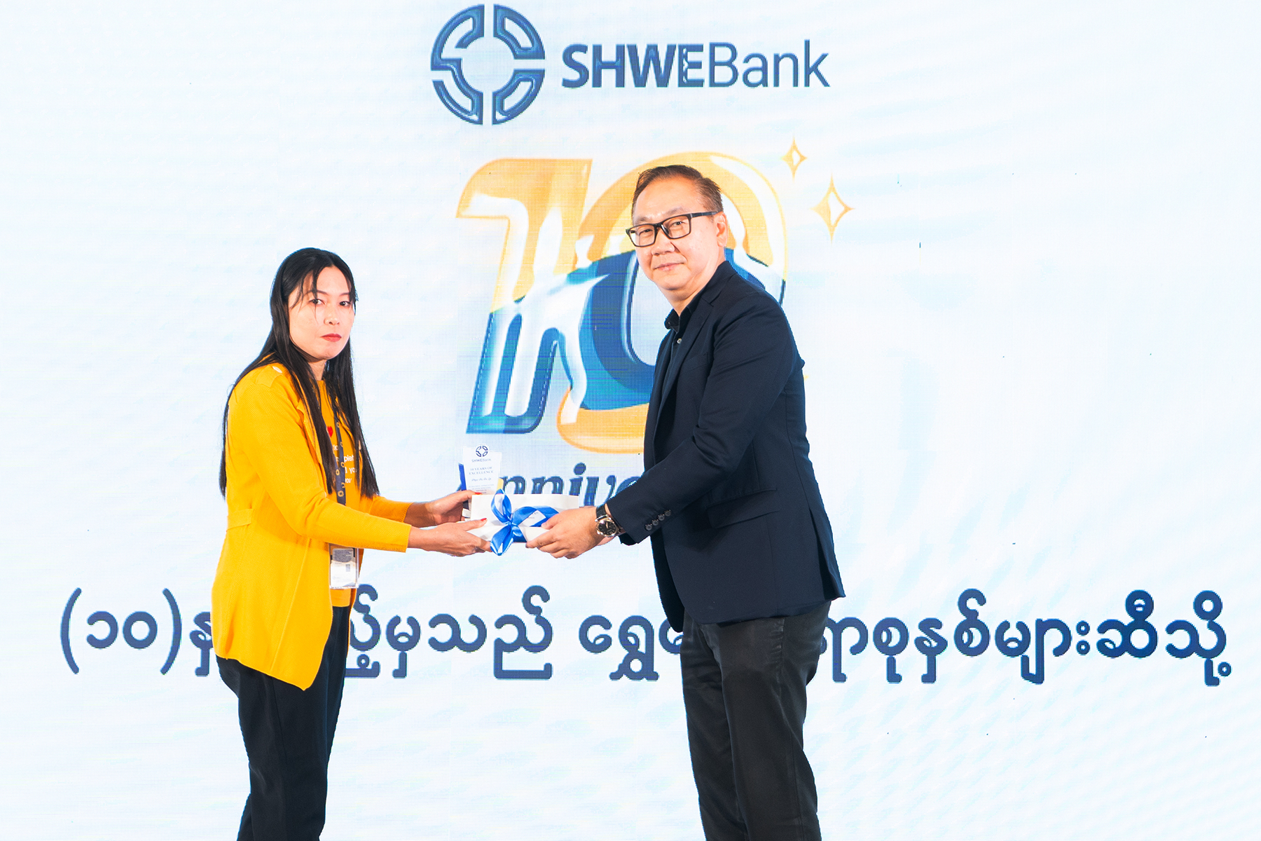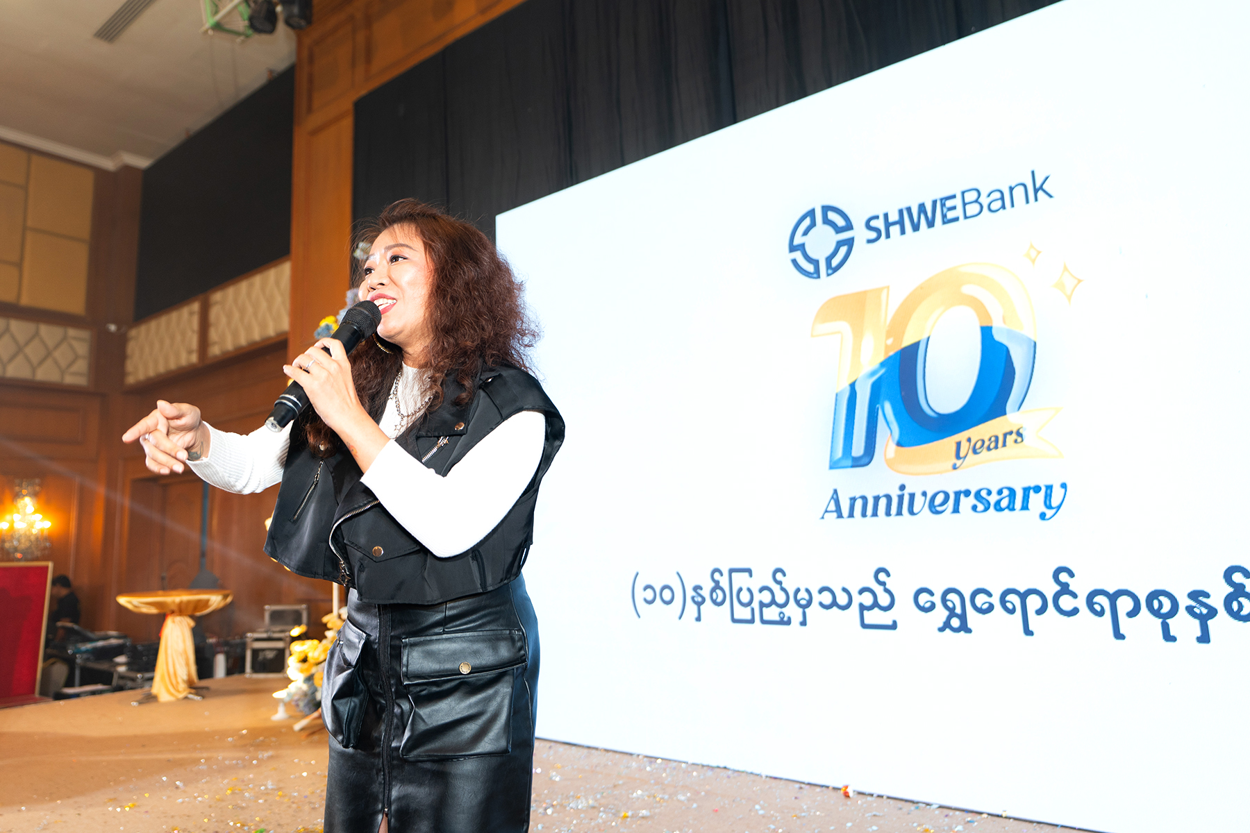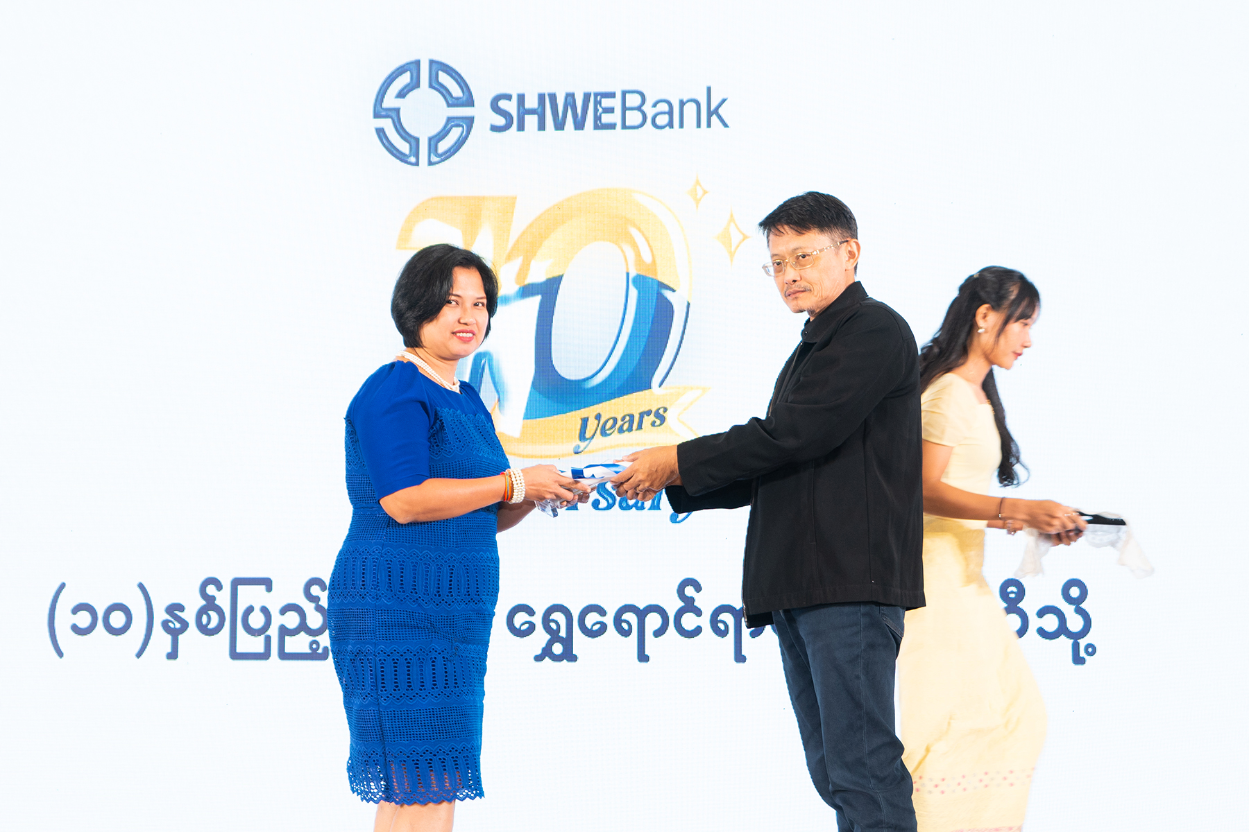SHWE Bank ရဲ့ ဆယ်စုနှစ်တစ်ခုကြာအောင်မြင်မှု ခရီးလမ်းမှာ အတူတကွ လက်တွဲလျှောက်လှမ်းခဲ့ကြတဲ့ ဝန်ထမ်းမိသားစုများအတွက် (၁၀) နှစ်ပြည့် အထိမ်းအမှတ် Staff Party ကို ပျော်ရွှင်ခမ်းနားစွာ ကျင်းပခဲ့ပါတယ်။